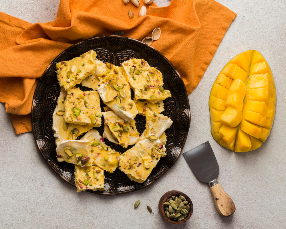 Succulent boneless chicken simmered with mango slices and fresh spices.